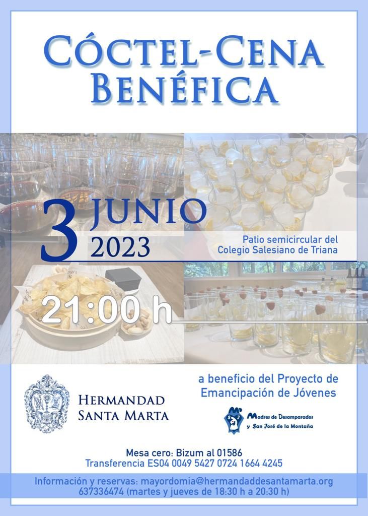 El próximo sábado 3 de junio tendrá lugar esta cena benéfica, en los Salesianos de Triana de Sevilla a partir de las 21:00 h., para recaudar fondos con el fin de seguir contando con este proyecto tan necesario para los jóvenes que cumplen la mayoría de edad.