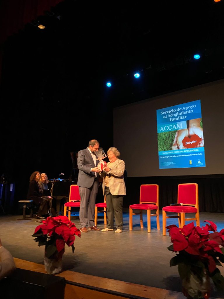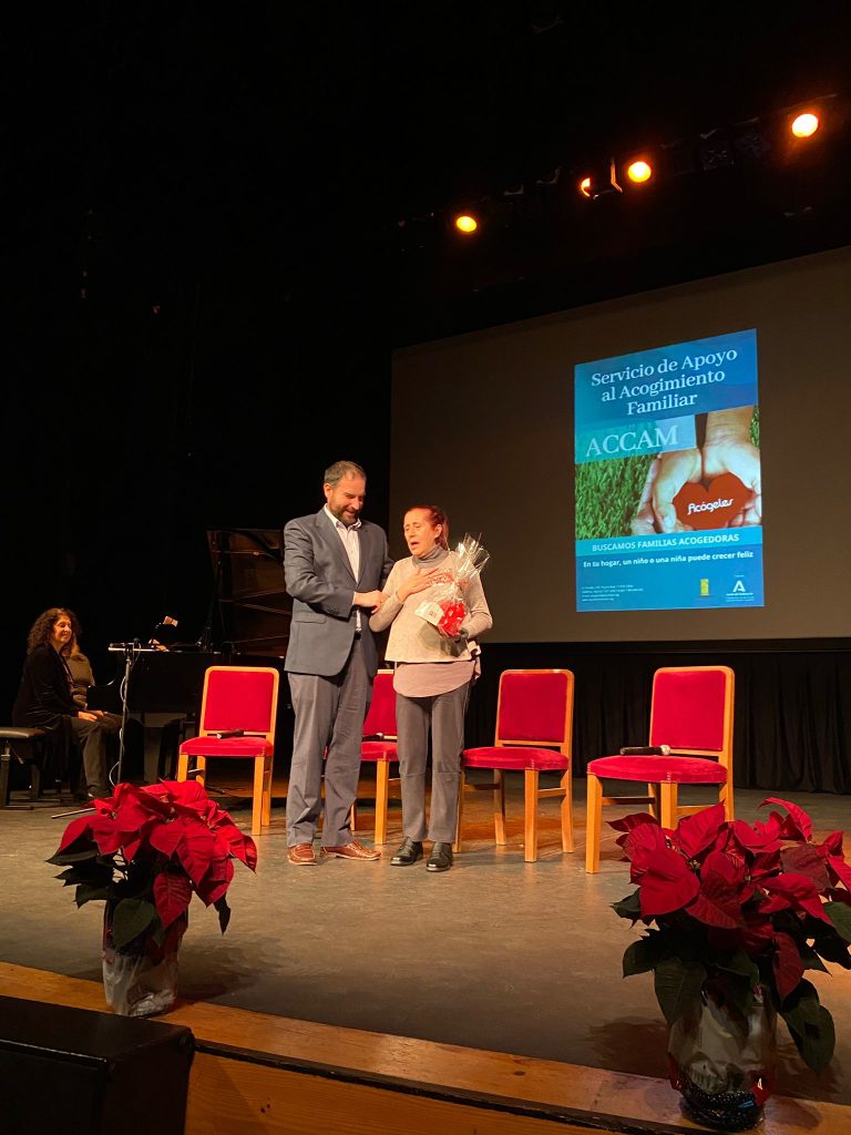 Desde el SAAF se quiso homenajear a varias familias por su compromiso y entrega a la hora de abrir las puertas de su casa a los y las menores que lo han necesitado a lo largo de estos años. Entre estas familias está el matrimonio formado por Carmen Benítez y Manuel Vela, una de las familias más veteranas del servicio que, junto a sus dos hijos biológicos, han asumido acogimientos de urgencia de menores con distintas necesidades y problemas de salud y a los que se les ha querido reconocer su entrega, dedicación, implicación y compromiso con los más pequeños, a quienes han brindado el calor de un hogar y la oportunidad de crecer, evolucionar y desarrollar su potencial desde el amor y un cariño sin límites.