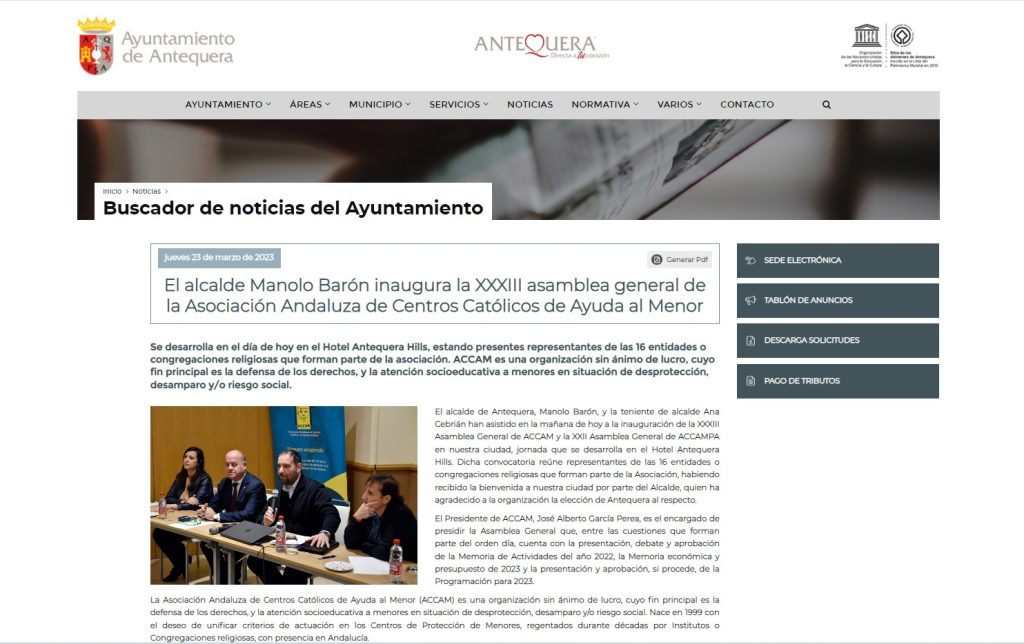 Varios medios de comunicación se han hecho eco, en sus páginas webs y redes sociales, de la celebración de la XXXIII Asamblea General de ACCAM y la XXII Asamblea General de ACCAMPA celebrada en Antequera el 23 de marzo de 2023.