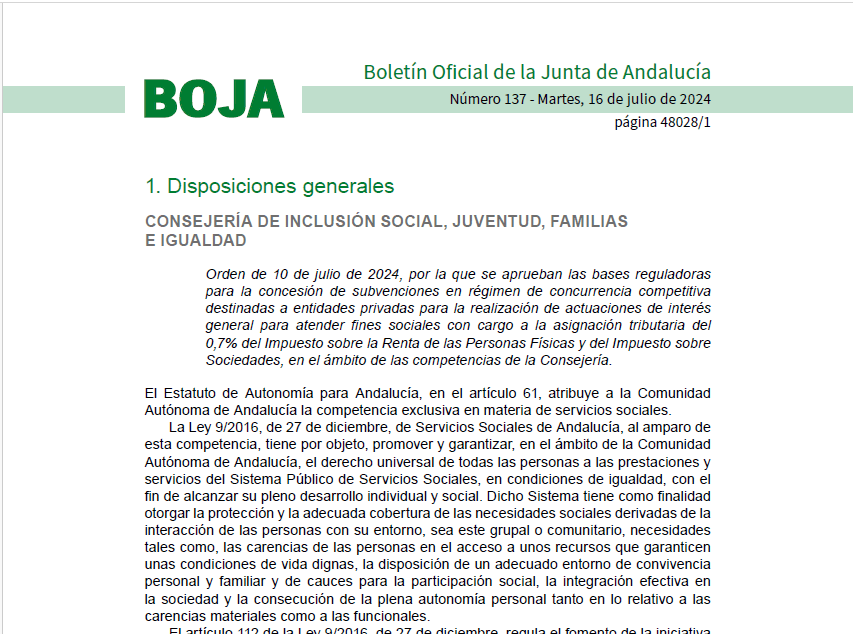 Subvenciones realización de actuaciones de interés general para atender fines sociales con cargo a la asignación tributaria del 0,7% del IRPF