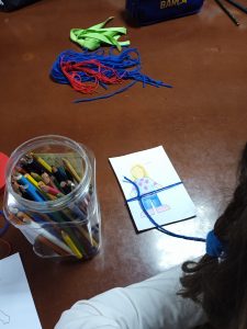 Conducidos por Nuria Hernández, técnico del programa de Familias Colaboradoras de ACCAM, los/las participantes en el taller fueron identificando y compartiendo con los demás los vínculos que tienen con su familia, amigos/as, educadores/as, etc. Para ello se ayudaron de materiales como un ovillo de lana, cordones de colores e hilo de pescar y realizaron actividades como dibujar y colorear figuras.